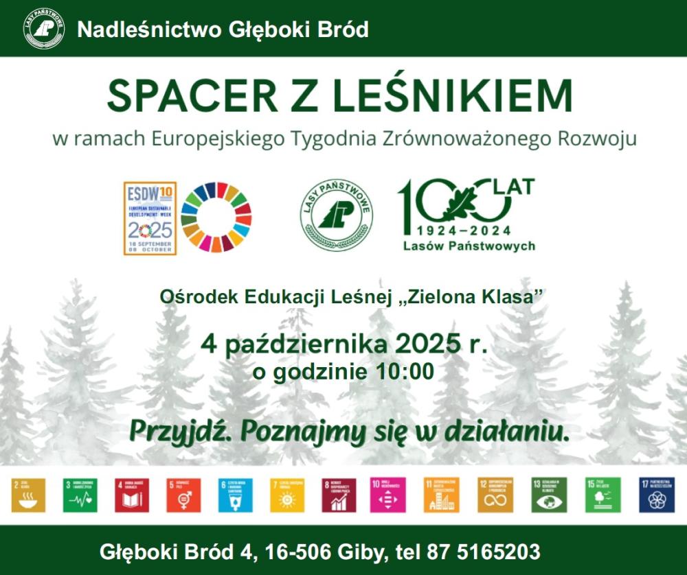 To świetna okazja, żeby posłuchać ciekawych historii o lesie, zobaczyć jego tajemnice i dowiedzieć się jak wygląda zrównoważona gospodarka leśna. Spotkanie rozpoczynamy w ośrodku edukacji leśnej "Zielona Klasa" o godzinie 10:00.